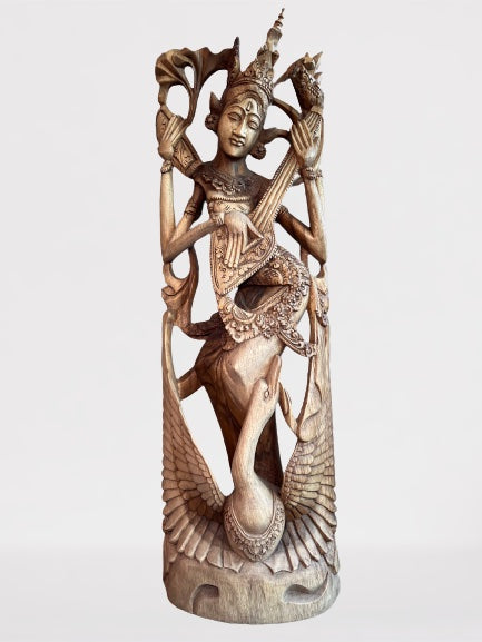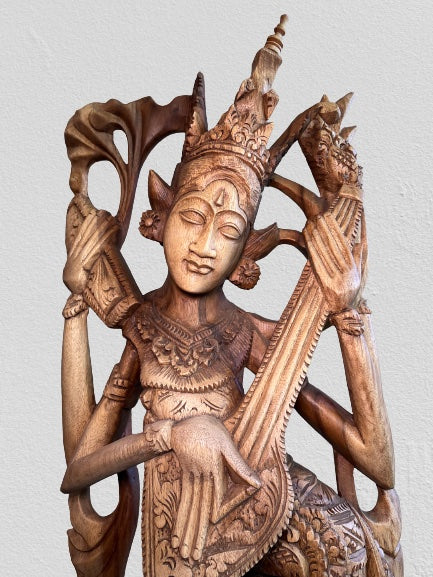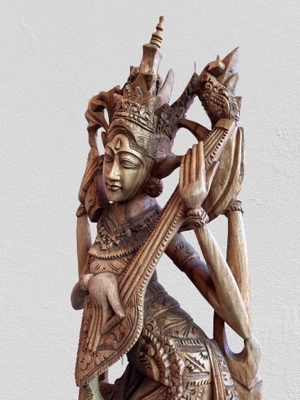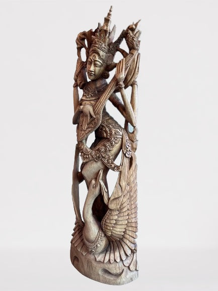 Wood Saraswati Wisdom Goddess Statue 42"